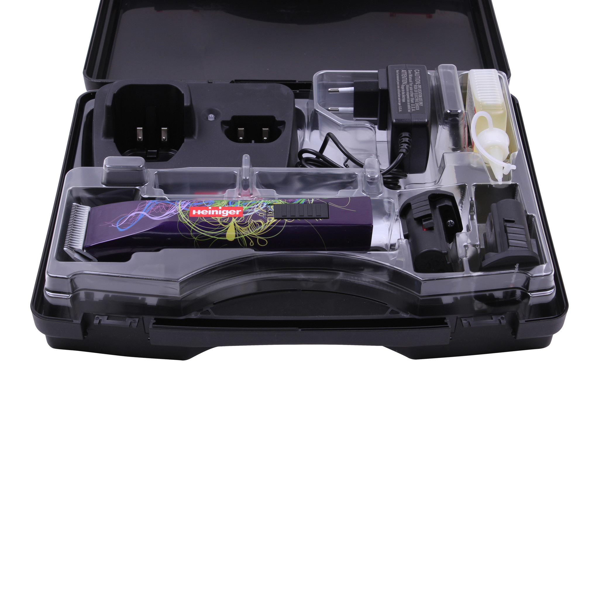 De Heiniger Saphir Style Accu Scheermachinie wordt geleverd inclusief scheerkop, laadstation, 2 Lithium-Ionen accu’s, olie, reinigingsborstel en handleiding. Bevat een hoogwaardig laadstation voor het opladen van accu’s en een batterij indicator.